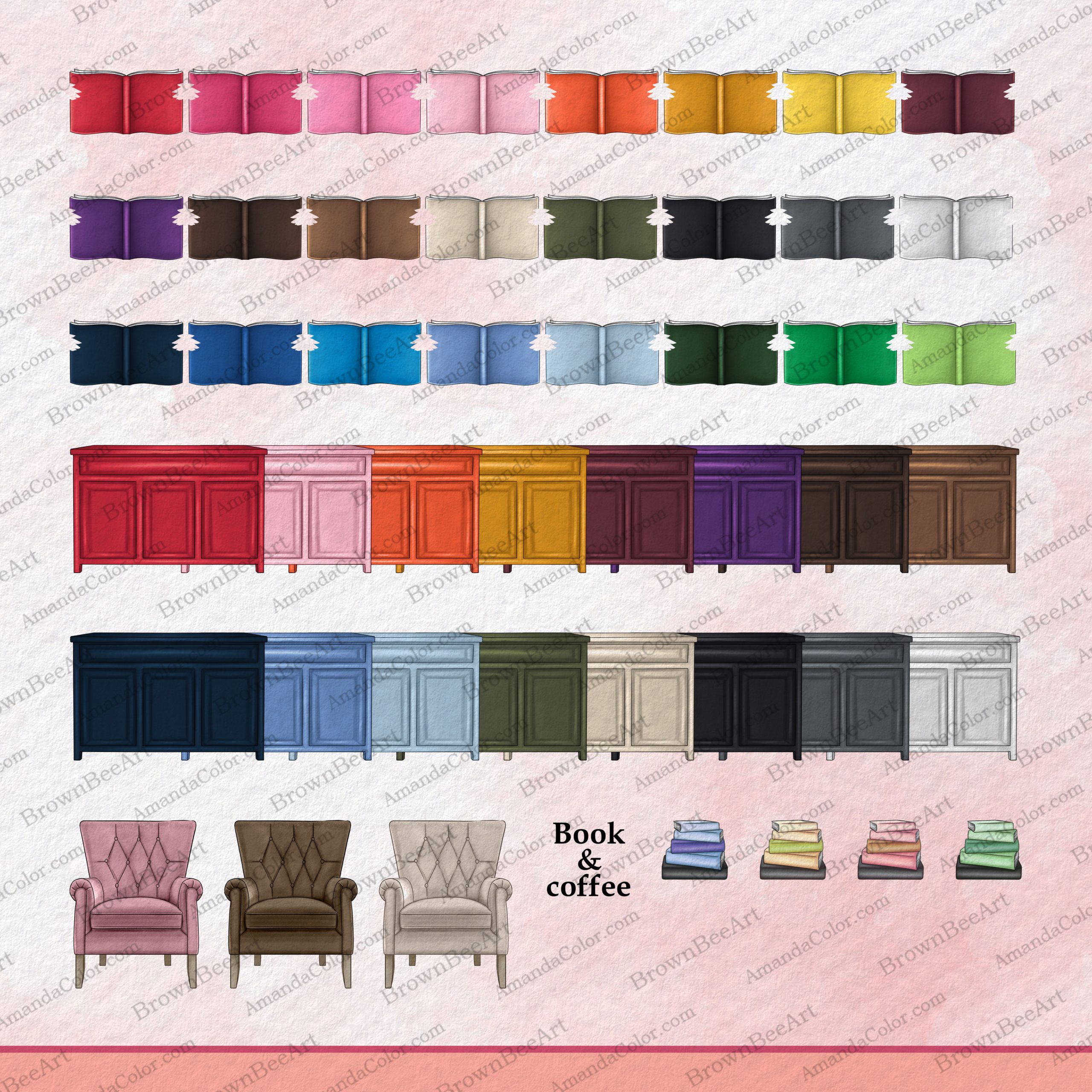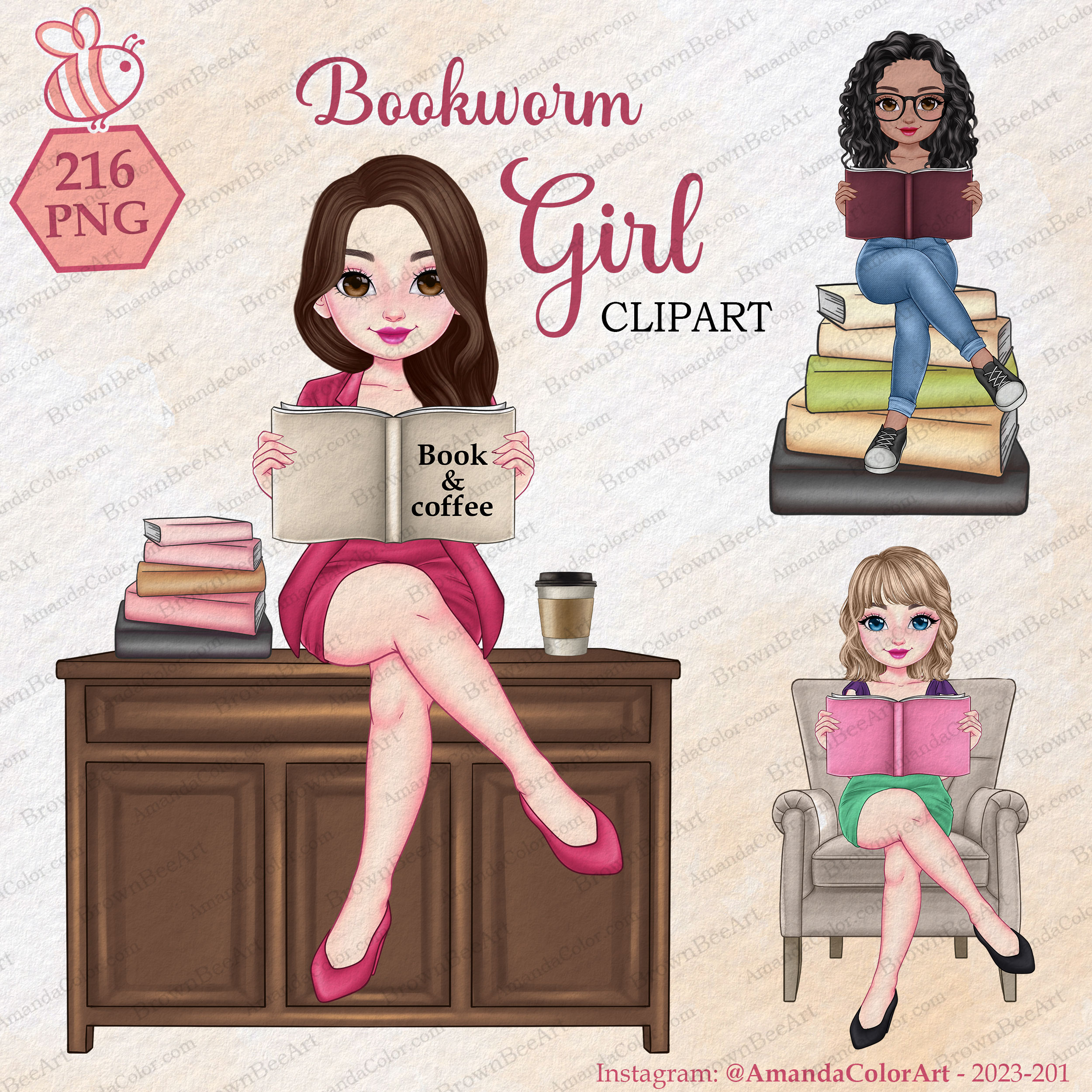 Bookworm Girl Clipart, Book and Coffee Lover Sisters, Personalized clipart