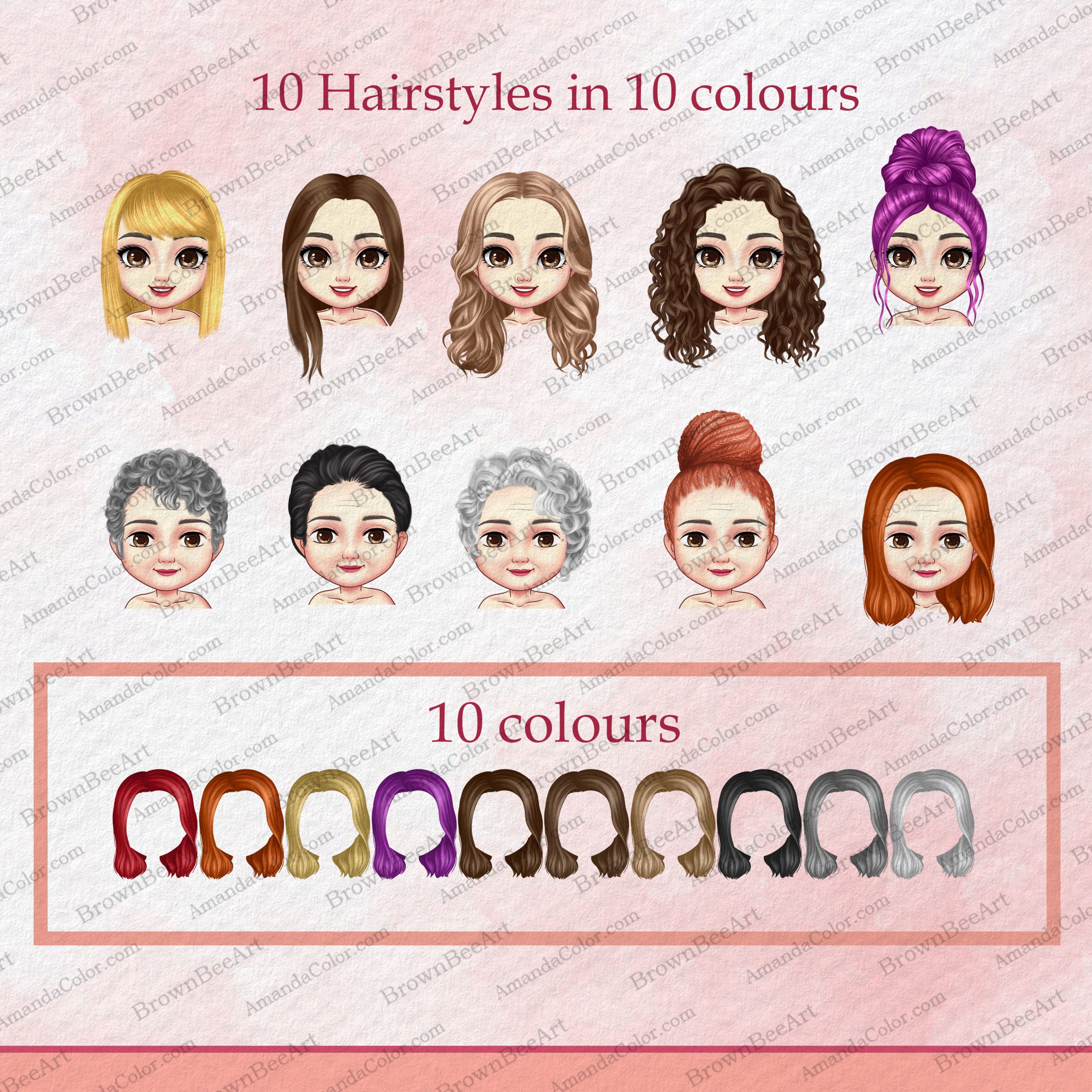 10 hairstyles in 10 colors